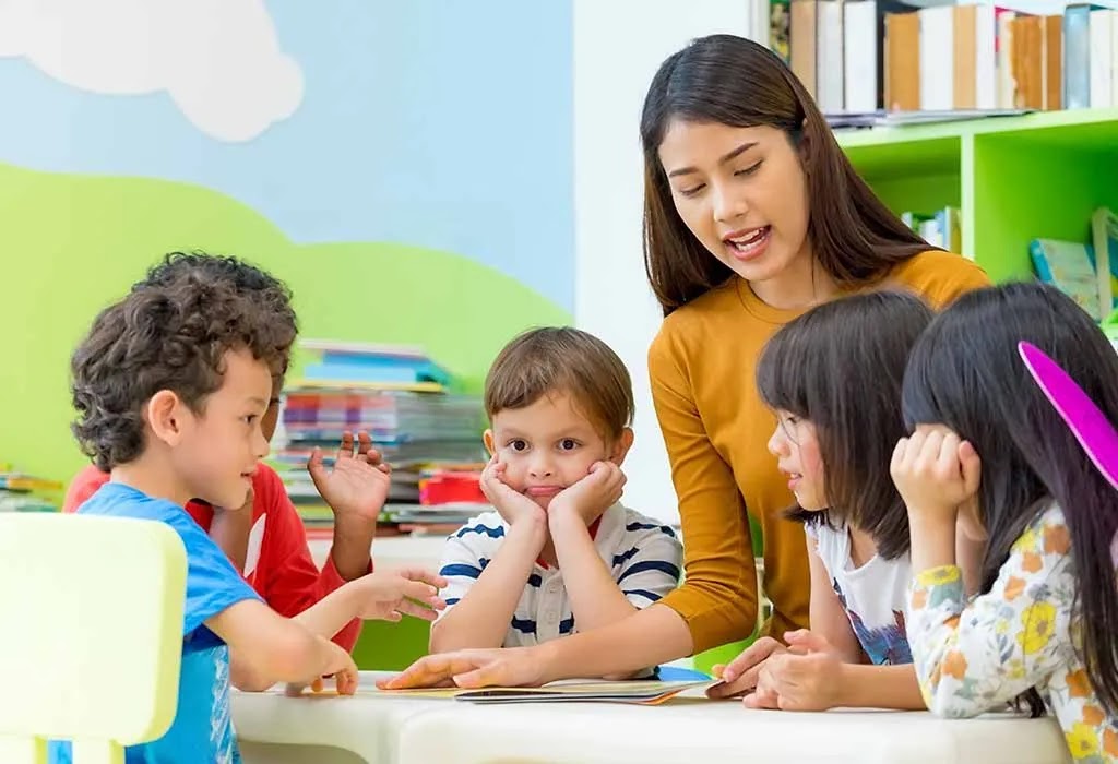 Language Development• They are able to write simple words without help; is curious to learn new words and sentences.• Asks ‘wh’ questions, like ‘why’, to be able to get more information about things.• Tries to express in five or six sentences while looking at the picture reading pages done.• Tries to express about own self in complete sentences.• Makes up own stories a, seeing the pictures.• Demonstrates oral expression.• Can communicate properly about needs and requirements in sentences